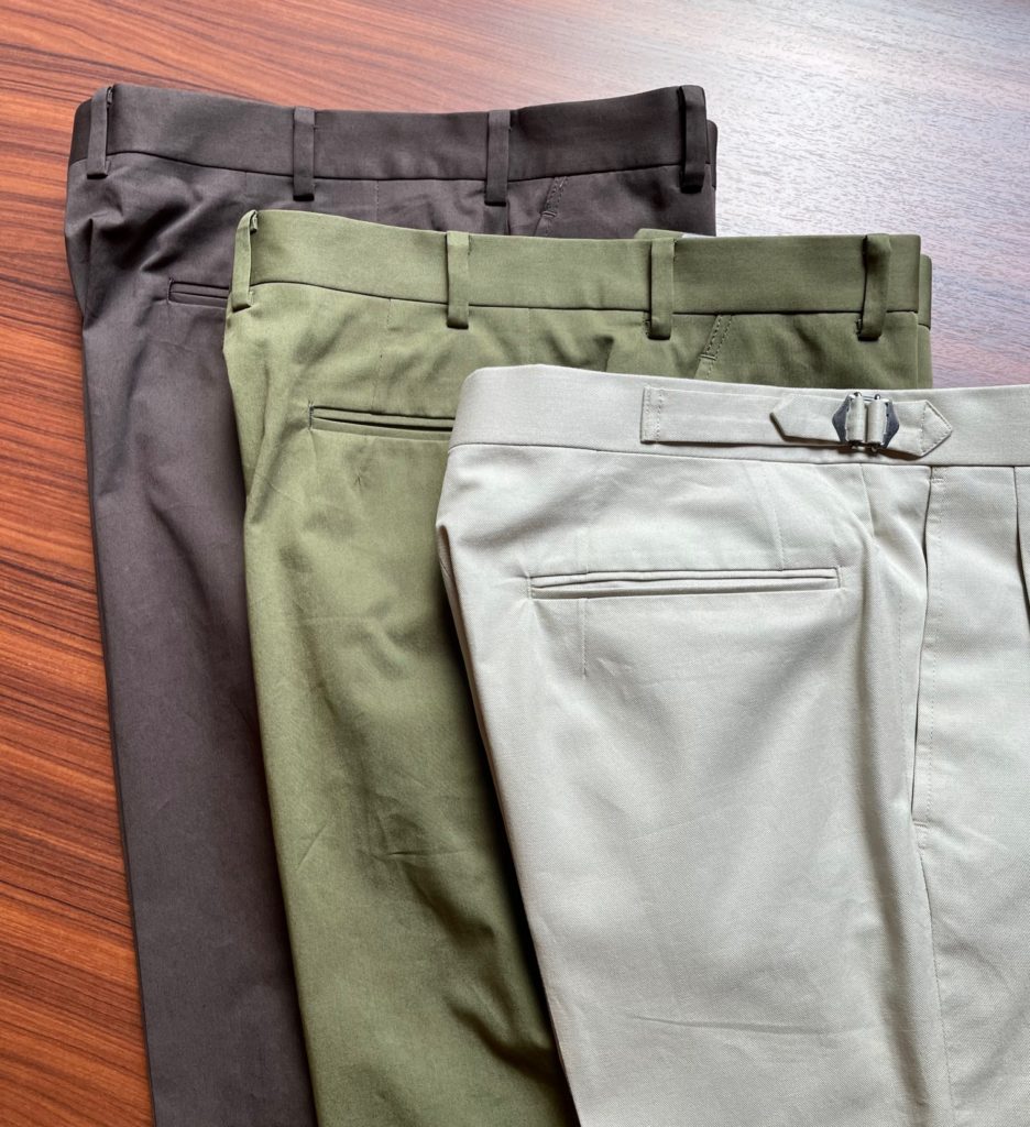 タックの数からベルトレスに脇尾錠(サイドアジャスター)と流行りに左右されない自分だけの一本。