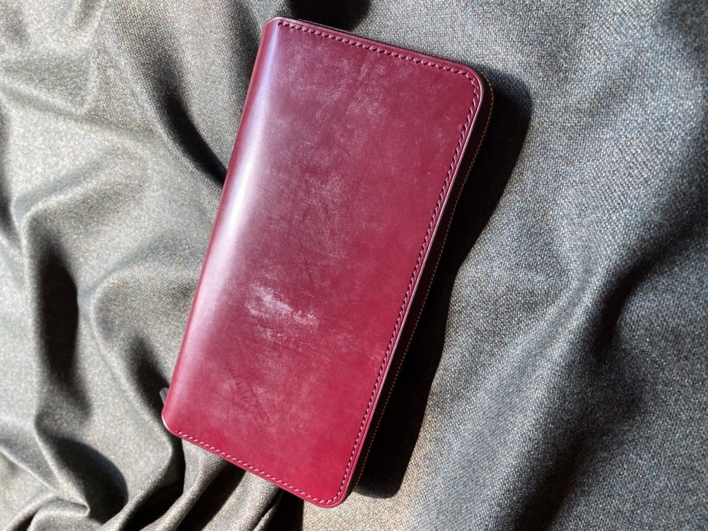 ボルドーブライドルレザー × ラウンドジップウォレット