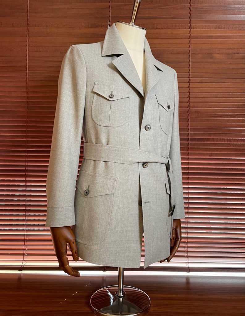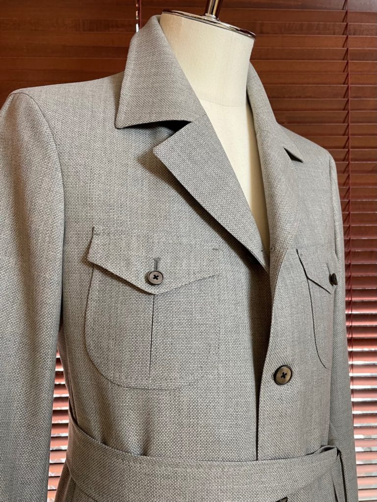 画像のサファリジャケットは2月にオーダーいただいたもの。