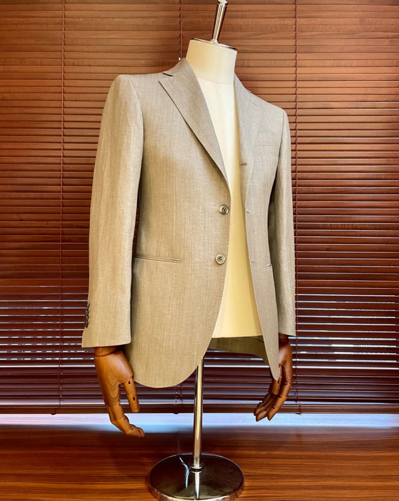 仕立て上がりはパリッとしたスーツの様な感じですが、着用するとリネンのシワがいいアジを出してくれるでしょう♪